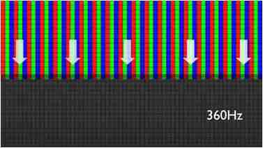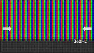 传统液晶驱动是从左到右单向进行,,在画面更新速度愈来越愈快的情况下,,,位于驱动线路末端的右下角区域,,画素的闸极来不及在短时间内获得足够电压,,,无法显示出正确的颜色资讯。。。。 |